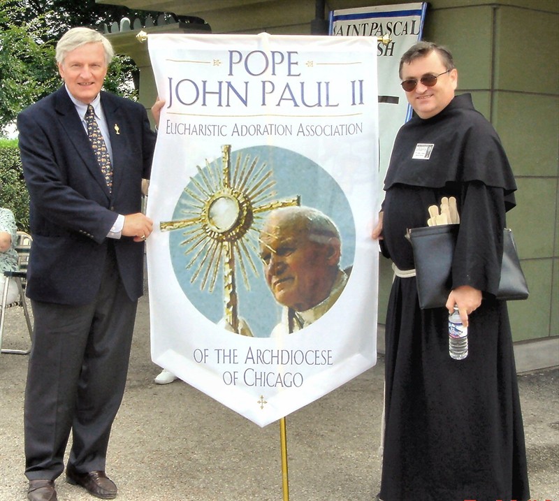 The very next day, Fr. John Grigus, OFM Conv. (RIP), introduced himself to Steve. Upon learning that Steve owned a computer consulting company, he asked him to review the Chicago Adoration website.  From that point Steve became busy with the Pope John Paull II Eucharistic Adoration Associate of the Archdiocese of Chicago working extensively on Adoration efforts due St John Paul II's "Year of the Eucharist"