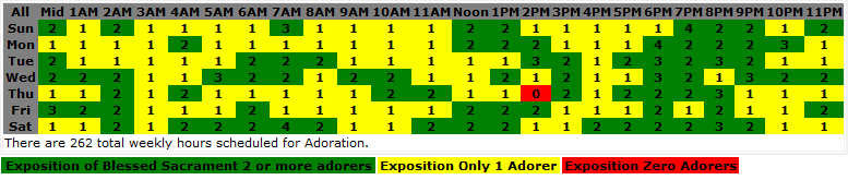 This is perfect timing for Adoration Signups as during Advent and Christmas most parishes do not want much activity after the Sunday Masses and, in addition, the business of the season does not bode well for many signups. But after New Years people are ready to wind down from the season, are hopefully closer to God after Advent, and will be ready for the perfect New Year Resolution, a weekly holy hour with God.