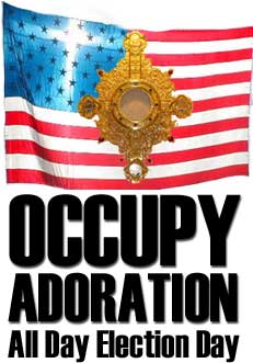 Adoration Servants has been told by good Catholics that prayer is not as important as political activity. We don't agree but here is what we propose. October 3rd is the first U.S. Presidential debate between Obama and Romney. Many Catholics already know who they are going to vote for no matter who "wins" the debate.
